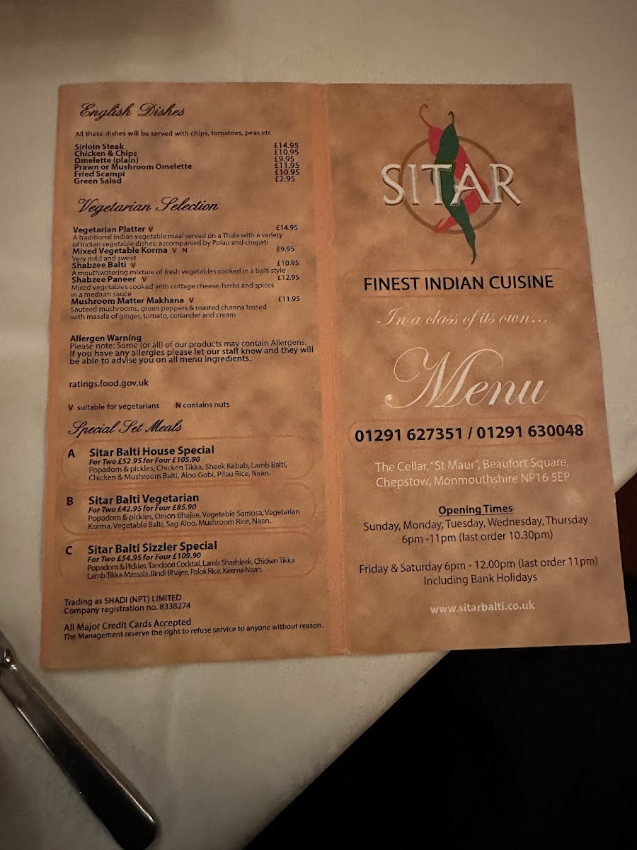 Whether you're enjoying a quiet meal or a lively evening out, The Sitar Balti promises exquisite flavors and a captivating ambiance. This restaurant is highly recommended for anyone seeking a culinary adventure in Chepstow!